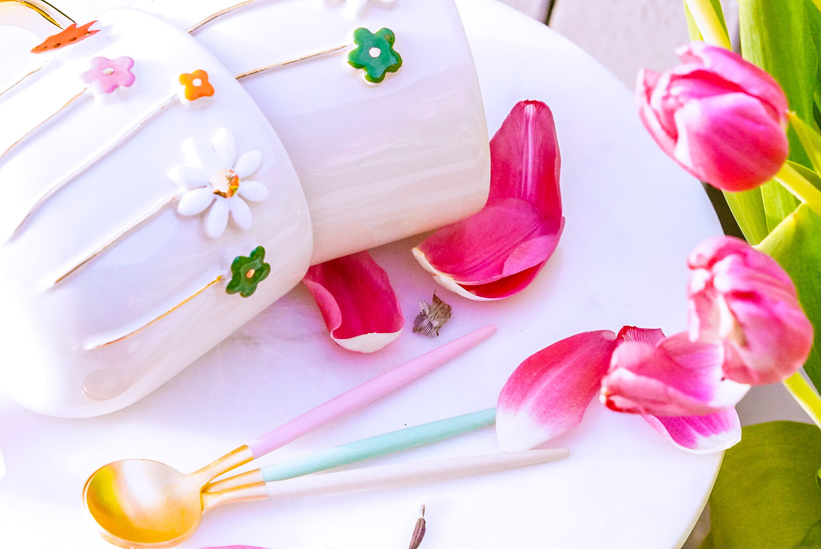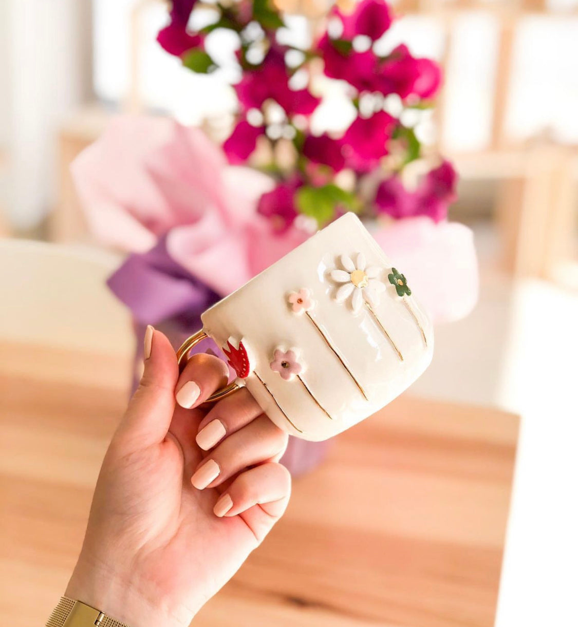 Each mug is unique and is characterized by beautiful hand-painted details. The handle has a painterly decoration made of real 24k gold paint.