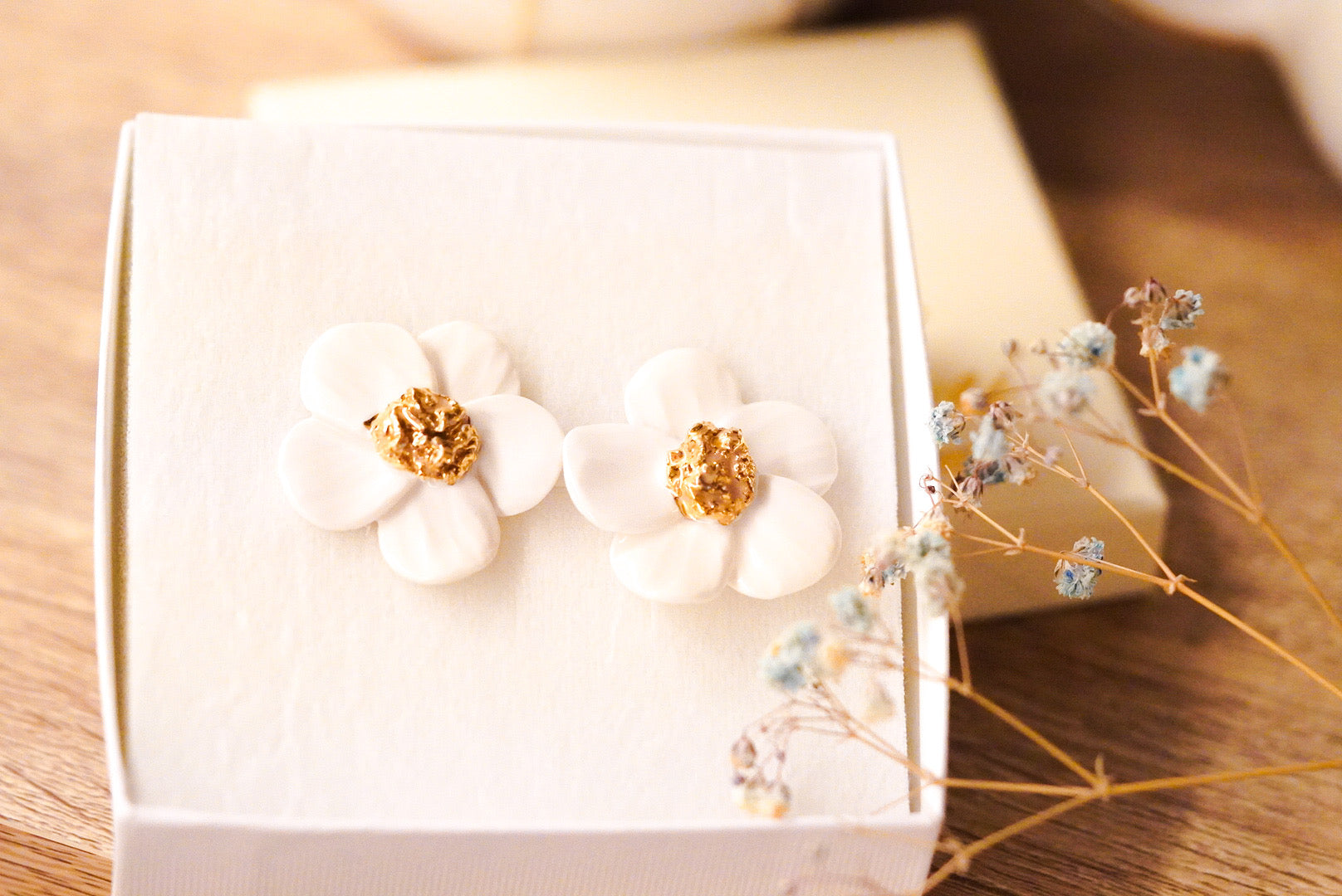Daisy 🌼 Earrings in Pure White & Golden Dot